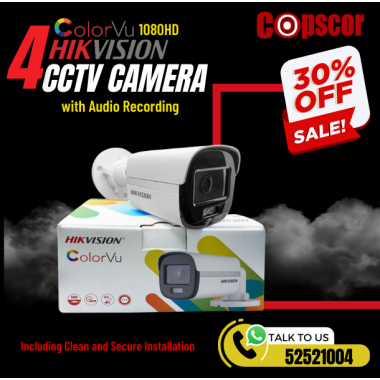 4 Camera Hik Vision Color Vu 2MP (Metal Casing) with Audio Recording [Model DS-2CE70DFOT-PFS]